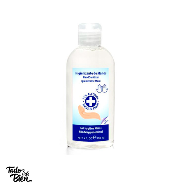 Mascarilla con etiqueta frontal. Gel para manos 60ml. Spray limpiador para manos
